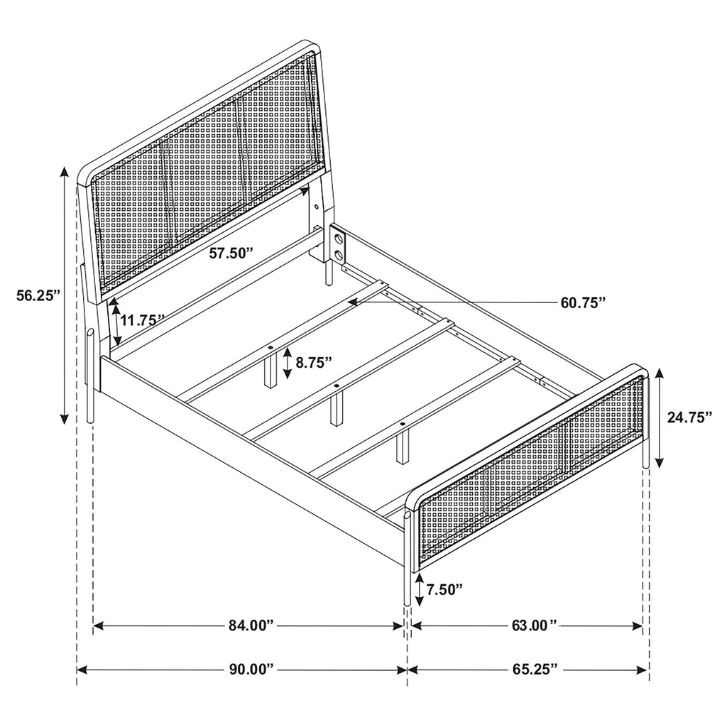 Create a relaxing atmosphere with the clean lines and neutral, wire-brushed, sand wash finish of this coastal bedroom set. A grey fabric padded headrest and footrest along with aged brass hardware throughout each piece offer lovely modern glam accents. Matching storage pieces and round framed mirror complete the set, offering thoughtful touches like felt-lined top drawers and a built-in tray.