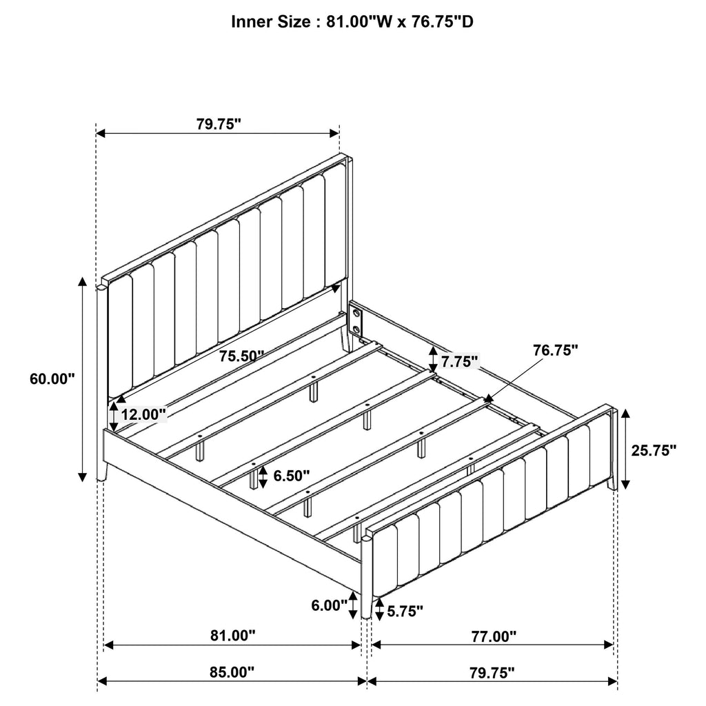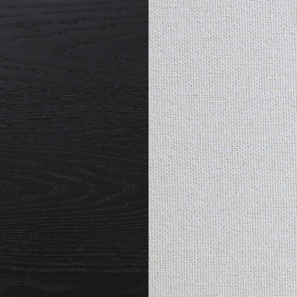 You're going to love the understated character and plush comfort of a modern wooden bed. Designed for refined flair in your bedroom, it boasts a tall headboard and low footboard. Each is accentuated with ivory upholstery over foam cushioning, with vertical channel tufting that creates texture and dimension. A black wood grain finish adds organic flair and beautiful contrast. Tapered legs complete the look of this chic bed.