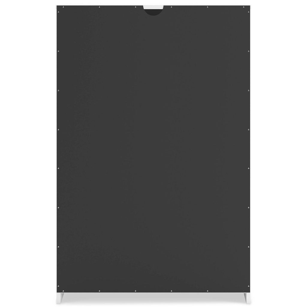 This chest of drawers has simple lines and contemporary styling, allowing it to blend seamlessly with any decor. Five spacious drawers slide easily on metal ball bearings and can be used to keep your clothes neat and organized. Sleek metal pulls in a brushed nickel-tone finish add to the streamlined aesthetic. Combine with other units in the collection to create a room that’s smart and stylish.