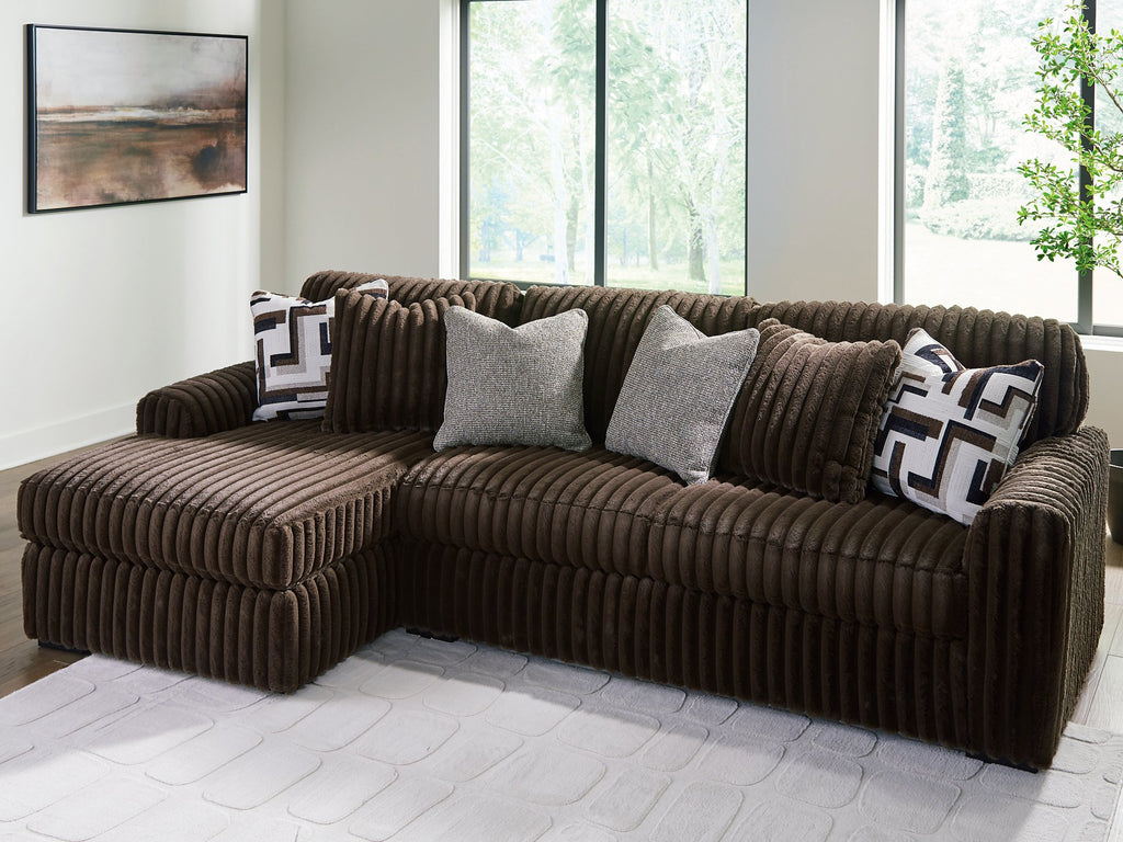 Wrapped in luxuriously soft jumbo corduroy, this sectional sofa with chaise takes cozy and inviting to a higher level. The sumptuous piece is perfect for unwinding after a long day, with exceptionally textured cushions that deliver pure indulgence. Now all you have to do is kick back, sink in and relax.