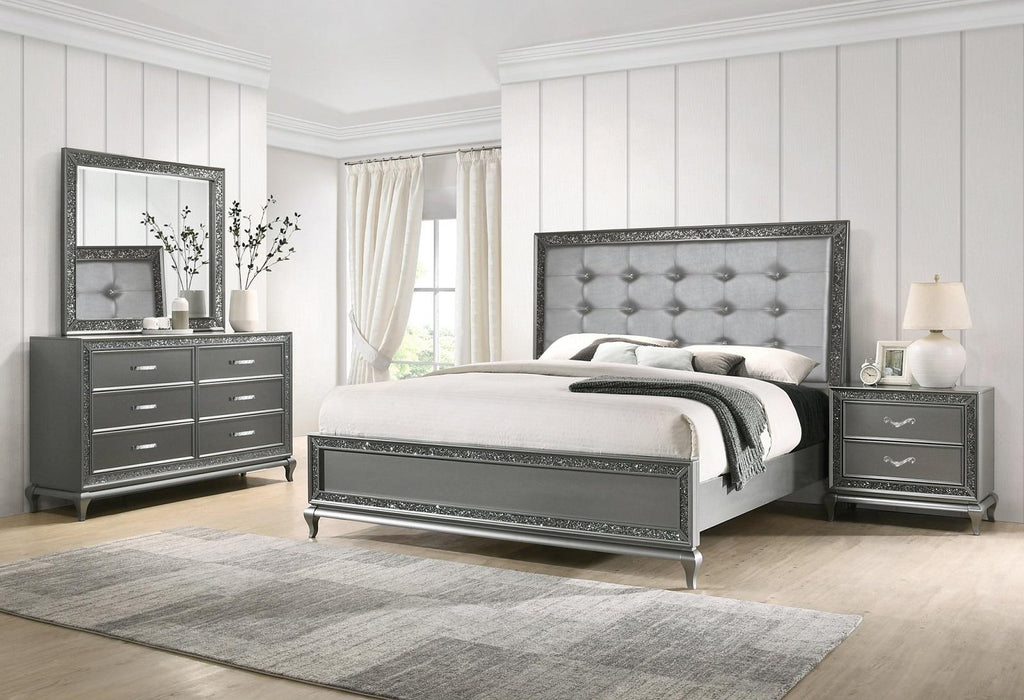 - Button-tufted details and crystal inlay trim adds a touch of distinction