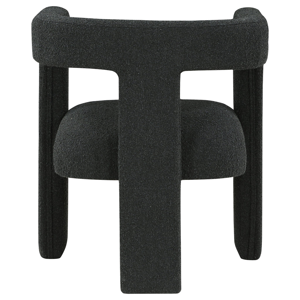 Enveloped entirely in the embrace of plush bouclé, this chair redefines the art of relaxation with its all-fabric design. The seamless transition from the cushioned seat to the curved arms, all robed in the same soft fabric, creates a cocoon of comfort. This chair's silhouette is a gentle wave of tranquility, its form an ode to the curves found in nature. The uninterrupted bouclé upholstery invites a serene tactile experience, transforming the chair into a modern sanctuary. It's a haven of softness, a singular statement of elegance and ease.